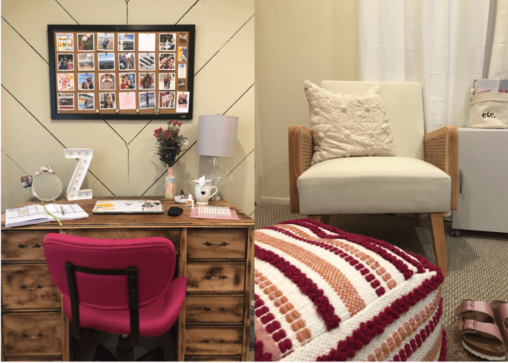 Ok, granted, this step isn’t as easy as the other two. It’s sort of like a Marie Kondo mission, taking everything out of its nonsensical place (I found my high school yearbooks under my bed and a bunch of extra contacts in my desk drawer) and finding a new place for it in your newly designated zones. Now, all of my notebooks for classes are in a desk drawer, while my art supplies are in the small little cabinet in the flexible zone. My “reading for fun” books are near my bed, and my dance bag is close to my studio space.
