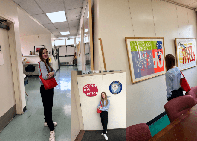 In my freshman year of college, one of my multimedia classes had an extra credit assignment to visit the Corita Art Center. Though, calling it a “center” might be a bit of a stretch. It’s really just a collection of Sister Corita Kent’s artwork spread across a small section of offices and conference rooms at Immaculate Heart High School. But, as I was new to LA and excited to get out into the city — the school is right by Griffith Park — I decided to turn it into a date, and take my new-at-the-time musician boyfriend with me. Of course, he took about five million pictures of me because we were in our first week of dating, so our visit is well-documented below.