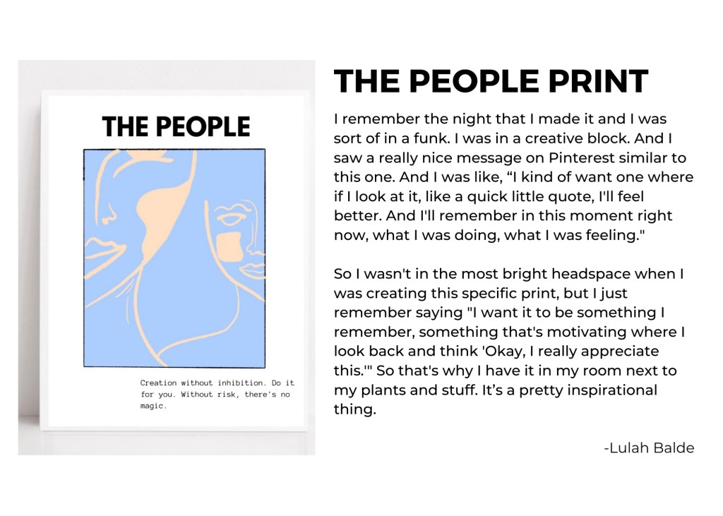 “When COVID hit, I feel like everybody was able to explore their passion during lockdown,” Lulah said. “So I downloaded Procreate like everyone else. I started out by doing little drawings, looking on Pinterest…There were some times where I was just staring at a blank paper for hours. But it was fun in the end, being able to see what you can make and just learning from yourself.”